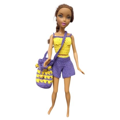 Conjunto tejido con short, top y bolso